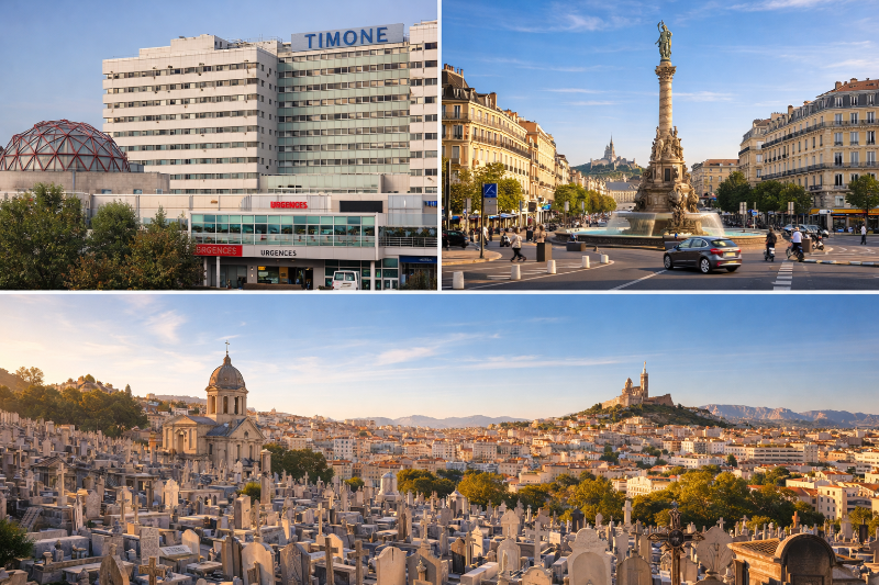 Ces quartiers abritent de nombreuses familles marseillaises et plusieurs établissements de santé, notamment l’hôpital de la Timone, où surviennent parfois des décès nécessitant une organisation rapide des obsèques.